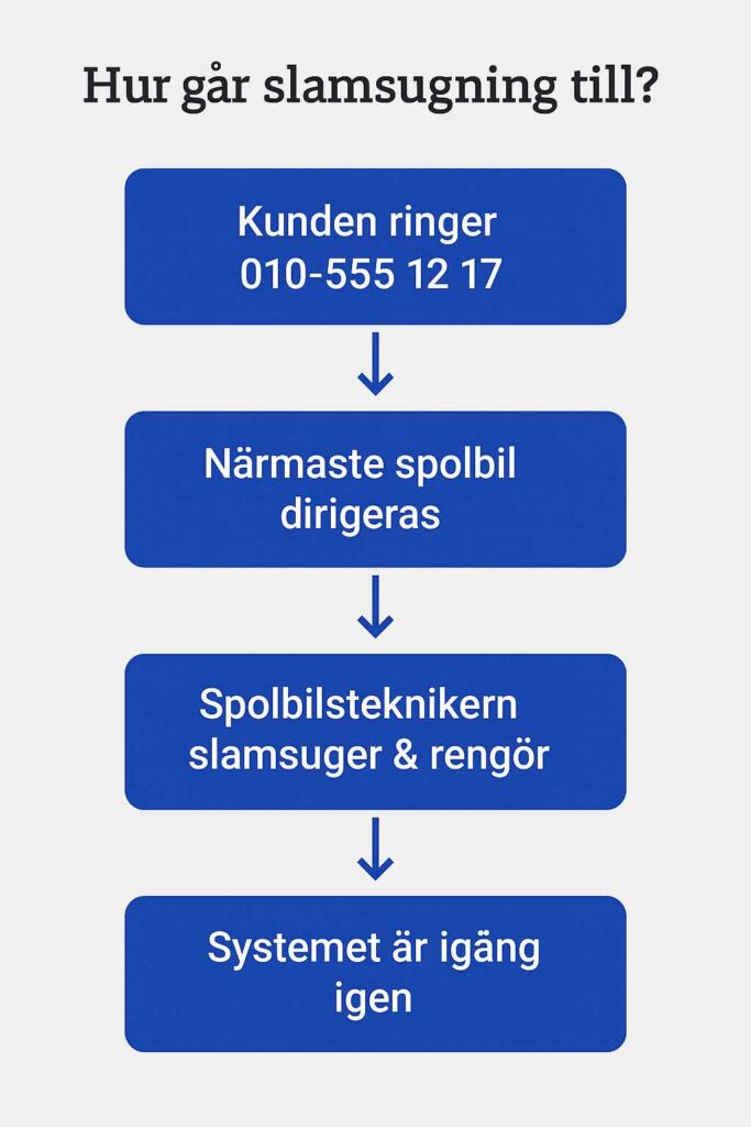 För att förebygga just den typen av problem används slamsugning. Det är en vanlig metod för att hålla avloppssystem i funktion och undvika stopp, översvämningar och dålig lukt. Allt som sugs upp transporteras sedan till godkända mottagningsstationer för miljövänlig hantering.
